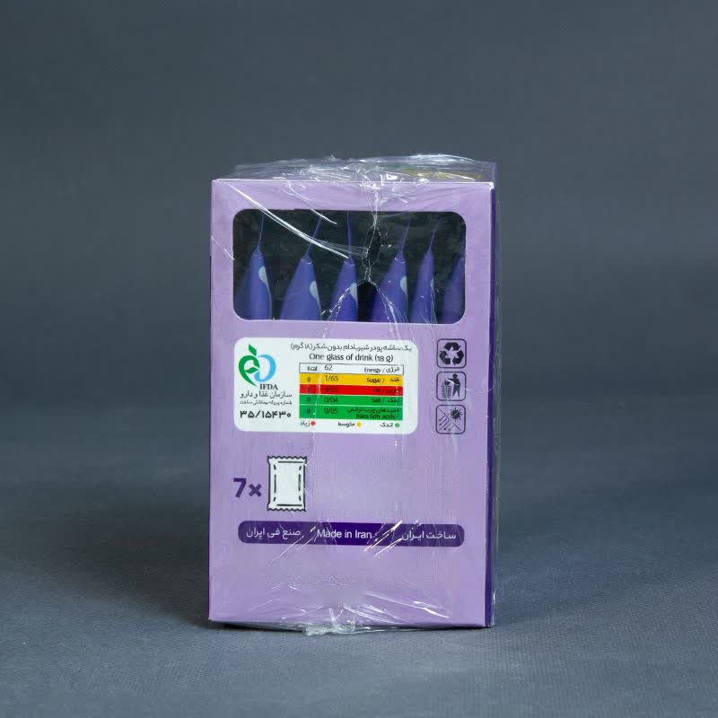 - ترکیبات: مخلوط پودر شیر بادام با 20 درصد مالتودکسترین بدون شکر افزوده